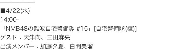 三田麻央@kyunmao_m99 -- 4月22日の【NMB48の自宅警備隊】にゲストとして出演させていただきます〜!!どうも、自宅警備隊(極)です😃✋news.nmb48.com/web/20200418/2…ぜひみてね〜! pic.twitter.com/eeIeTj6nbK