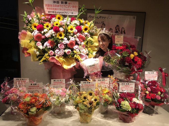 沖田彩華@ayaka1o11 -- 幸せいっぱいの生誕祭でした❤️本当に本当にありがとうございました🙇♀️✨後ほど、ブログで気持ちを綴らせてください🙇♀️❤️素敵なお花たち、、、💐ありがとう😭❤️❤️しあわせ! pic.twitter.com/F10rptWJ86