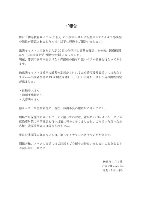 キャスト全員PCR検査を受け、私は陰性でした。