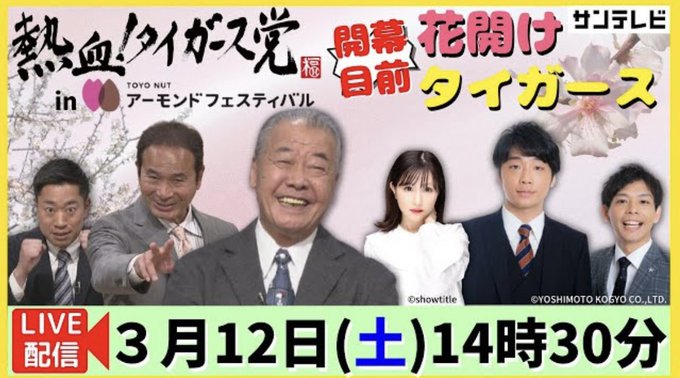 『熱血!タイガース党inアーモンドフェスティバル 開幕目前 花開けタイガース』に出演させて頂きます🐯🌟