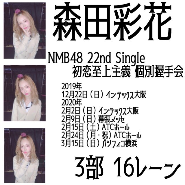 森田 彩花@ayatyeen_luv -- みんな会いに来てね🥺🥺❤️?? twitter.com/484848____/sta… ありさ@GAL森田彩花推し👩🏼💅🏼 NMB48 22nd Single「初恋至上主義」個別握手会森田彩花ちゃんと握手しませんか?fortunemusic.jp/nmb48_201911_m…〜第4次受付〜本日19日12:00~21日12:00まで!卍👩🏼3部は16レーン集合ょろたの~💗#森田彩花 #あやてぃん#ギャルてぃん革命 #あやてぃんレーン満開企画 pic.twitter.com/qt8GluCOpj
