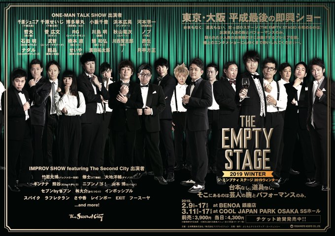 高野祐衣@yuipooon12_06 -- 久しぶりのエンプティステージです\(^ω^)/しかもなんと大阪!!是非遊びに来てください♡ twitter.com/the_empty_stag… THE EMPTY STAGE THE EMPTY STAGE 2019 WINTER2/9(土)〜2/17(日)に東京のBENOA銀座3/11(月)〜3/17(日)に大阪のCOOL JAPAN PARK OSAKA SSホールにて開催!すべて即興で行われる、一夜限りの奇跡をぜひその目で確認してください詳しくはこちらからthe-empty-stage.jp/schedule/2019_…#エンプティステージ#平成最後の pic.twitter.com/ggQTsNVBlh