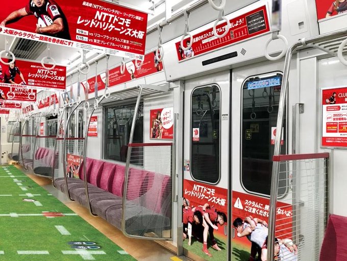 渋谷凪咲@_Nagisa_Shibuya -- 凄すぎます😳🏉🔥皆さん #レッドハリケーンズトレイン 乗車して下さいね♡私も乗りに行こ!#レッドハリケーンズ twitter.com/redhurricanes/… NTTドコモレッドハリケーンズ大阪 /#これはゆうとこ🙌\2022年1月2日(日)から15日(土)までの2週間、Osaka Metro御堂筋線車両にラグビー場を再現した車内ジャック《レッドハリケーンズトレイン》を実施することが決まりました🚞詳しくは公式ホームページをチェック⏩docomo-rugby.jp/news/detail.ht… pic.twitter.com/7WXzMD4K3m