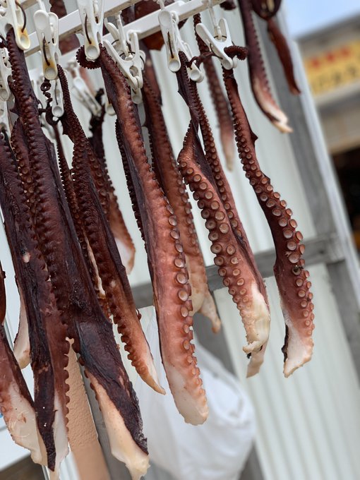 洗濯物みたいに干してるタコ…笑