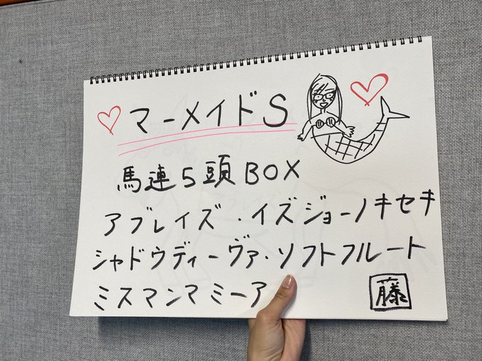 藤江れいな@nya_n017 -- 今日はマーメイドステークス🧜♀️馬連BOXで②⑤⑧⑨!ミスマンマミーアが居なくなってしまったのでミス繋がりでミスニューヨーク追加しようと思います💚当たるといいなぁ!#マーメイドS pic.twitter.com/GN65v0Zicv