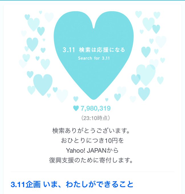 今年もYahooで3.11と検索すると