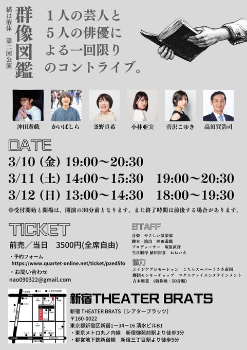 小林 亜実@kobayashiami112 -- アフタトークも決まりました!今回、お手紙お差し入れも可能です🫶🏻よろしくおねがいします🐰🌱 twitter.com/monkeychop_090… 塚原直彦 【群像図鑑】いよいよ今週10日(木)から開演です!上演時間は75分+アフタートーク15分の約90分!!〔アフタートーク〕10日(金)19時 阪元裕吾監督11日(土)14時 男性CAST登壇11日(土)19時 女性CAST登壇12日(日)13時 白石晃士監督12日(日)18時 全CAST登壇となります!乞うご期待下さい☺ pic.twitter.com/4kFwzoT2t1