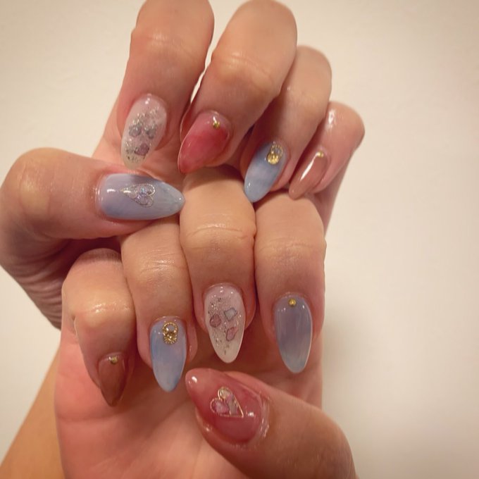 明石奈津子@nattu817 -- ネイル毎月お姉ちゃんに変えてもらってるんだけどここ最近のやつ載せてみる☺️女子のみんなどんなネイルしてる〜?💅🤳 pic.twitter.com/I1Pwbn5Kj5