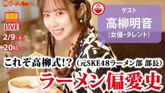 本日20時生放送!#高柳明音 さん(元SKE48 ラーメン部 部長)に「ラーメン偏愛史」を語っていただきます🍜💞