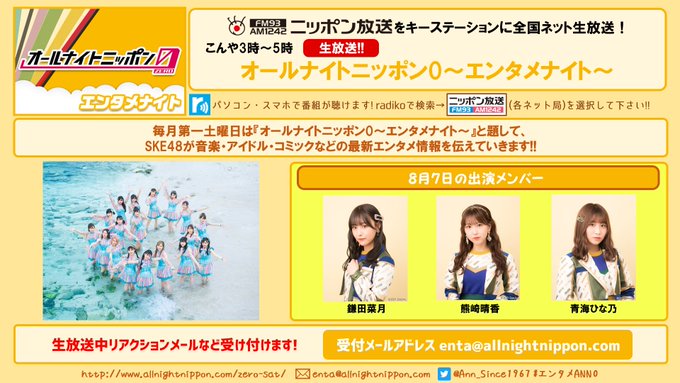 第1土曜は #SKE48 のメンバーが音楽・アイドル・コミックなど最新エンタメ情報お届け!