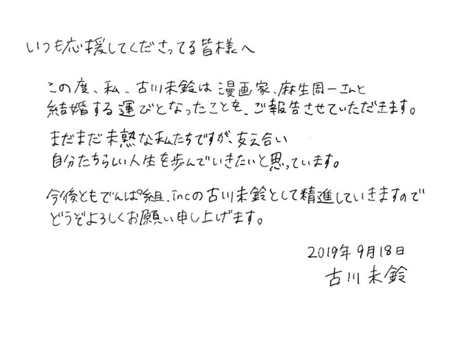 古畑奈和@alto_nao -- びびびびっくり…‼︎‼︎おめでとうございます😭💗💗更に幸せいっぱいな日々を過ごせますように🎂💗 twitter.com/furukawamirin/… 古川未鈴 いつも応援してくださってる皆様へ pic.twitter.com/cQ0xJxlgzK
