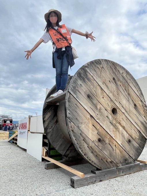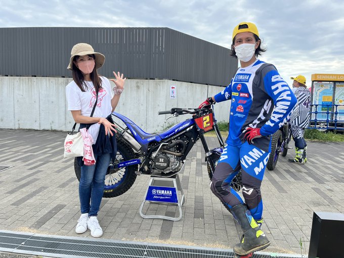 #シティートライアル のレース終了後もレポート用取材のため、撤収の邪魔にならないようコースをチェックし、その後はライダーやアシスタントさん、主催の皆さんにお話を伺っていたオートバイ女子部の梅本さん。