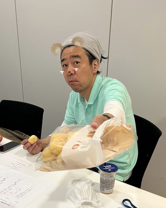 有野さんがTシャツしわくちゃで