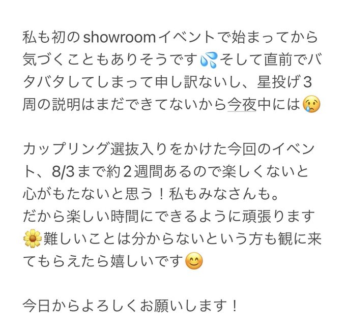 日付け変わって、今日の17時から #showroom選抜 決定オーディション始まります。