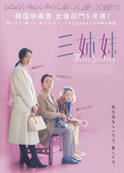 『三姉妹』試写。それぞれ問題を抱えた三姉妹のお話。怒りや悲しみ、感情を掻き乱されたのに、終わった後はやけに爽やか。まぁじれったい。とにかくじれったい。でも、明日からわたしたちの未来がちょっとだけ明るくなるような気がした。みんな「頑張りすぎなくていいんだよ」って言ってあげたい。 pic.twitter.com/F0JXBitpVO