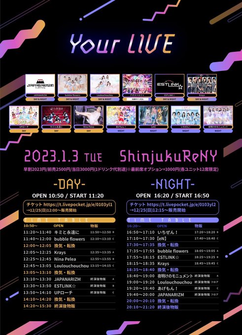 本日は新宿ReNYにて昼夜お待ちしております!