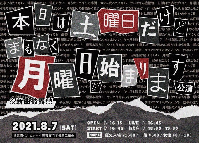 【本日は土曜日だけどまもなく月曜日が始まります】公演