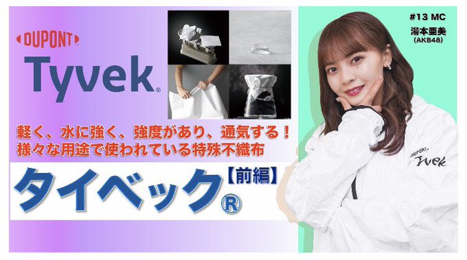 湯本亜美@ami_15chans -- 旭化成アドバンスさんのYouTubeに出演させていただいております!初MC緊張しました...🤓🌀笑タイベックってなんでしょう〜是非、ご覧ください💞 twitter.com/asahikasei_ad/… 旭化成アドバンス株式会社 おはアドバンス😋🌟今日は月曜日… ということは、YouTubeの更新日です📺✨今回は、なんと❣️AKB48メンバーの、湯本亜美さん @ami_15chans に出演頂いています🥺タイベック®︎って、なんでしょう🤔もうすぐ、お昼12時頃のupです🙌是非checkしてみてください❗️youtube.com/c/Asahikaseiad pic.twitter.com/PFyP8aqR7g