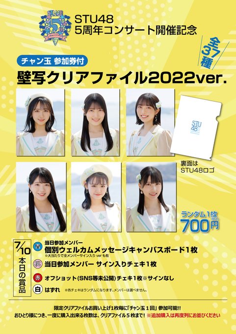 7月10日 (日) STU48 5周年コンサート、当日券及び9日STU48 5周年祭り会場にて行う最終事前販売に関してのお知らせ📣