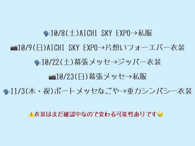 そして、10月22日のジッパー衣装ですが、お借りするのが難しいみたいなので変更させてください…。