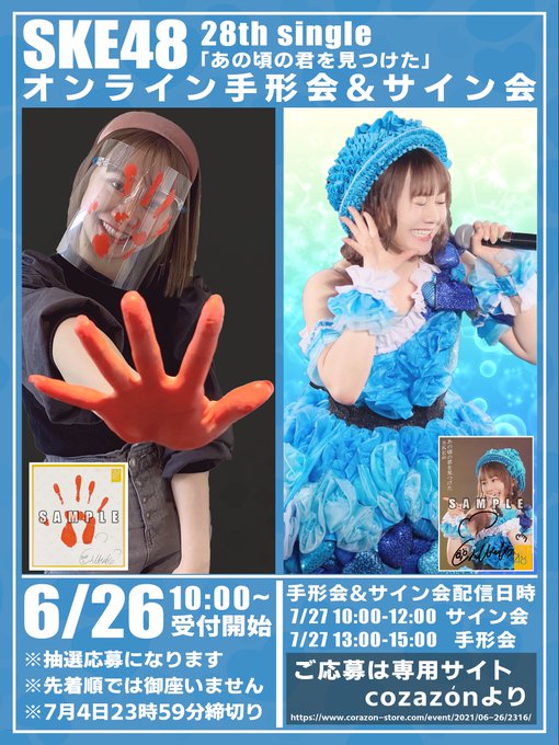 松本慈子@chikako_1119 -- 受け取ってくれる方~???🥺🤚🏻受付は、今日の23:59までだよん!!!!!! twitter.com/chikako_crew/s… 松本慈子応援アカウント⚓️(旧:松本慈子企画) ★ #松本慈子 ちゃん情報 ★【翌日応募開始】SKE48 28th Single 「あの頃の君を見つけた」オンライン手形会&サイン会・応募 → 6月26日(土) 10時00分から・締切 → 7月4日(日) 23時59分まで※先着順では御座いません明日より下記サイトにてcorazon-store.com/event/2021/06-…#あの頃の君を見つけた pic.twitter.com/yzI40UN3qM