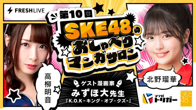 【次回予告】2/26(火)19:00~放送となります!出演SKE48メンバーは高柳明音(@akane29_o8o)さんと初登場、北野瑠華(@official_ruka25)さんです!ゲスト漫画家さんはみずほ大(@orebakadayone)先生です!お楽しみに! #SKE48のおしゃべりマンガサロン #高柳明音 #北野瑠華 #みずほ大 #SKE48 pic.twitter.com/axXwptP3h1