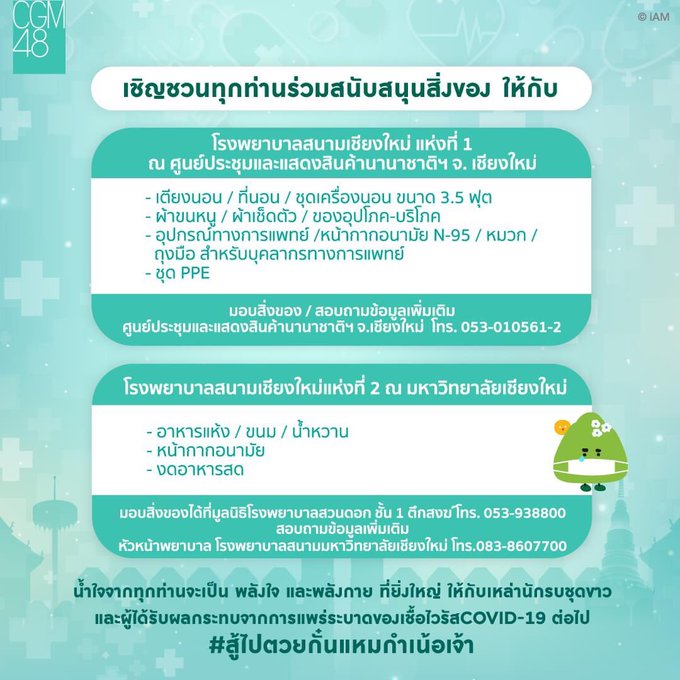 อิซึรินะ 伊豆田莉奈 Izurina@izuketsu_deen -- 😌🙏🤍💚 twitter.com/cgm48official/… CGM48Official พวกเรา CGM48 ขอร่วมเป็นส่วนหนึ่งในการเป็นกระบอกเสียงเล็กๆ เชิญชวนทุกท่านร่วมสนับสนุนสิ่งของจำเป็น ให้แก่โรงพยาบาลสนาม จ.เชียงใหม่ ทั้ง 2 แห่งน้ำใจจากท่านจะเป็น พลังใจ พลังกาย ที่ยิ่งใหญ่ ให้กับเหล่านักรบชุดขาวและผู้ได้รับผลกระทบจากการเเพร่ระบาดของเชื้อไวรัส Covid - 19 ต่อไป pic.twitter.com/hdhnWchUPV