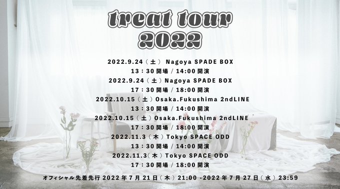 野島 樺乃@nojimakano_0906 -- みんな!ツアー待ってるよ🥺 twitter.com/and_421officia… et-アンド- 本日15:00より、treat tour2022のオフィシャル抽選先行を開始します🌈皆さんぜひチェックしてください♪お申込みはこちら▽r.y-tickets.jp/et2202_hp2#etアンド#treattour pic.twitter.com/CvWnltYG9m
