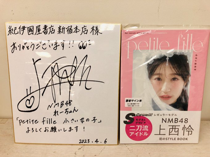 上西怜【NMB48 公式です!】@jonishi_rei -- サイン本!ぜひ!ゲットしてください❤️色紙も見つけれーちゃんしてねっ⭐️ twitter.com/kinoshinjuku/s… 紀伊國屋書店 新宿本店 【5階タレント写真集】NMB48 #上西怜 さんの新刊『petite fille 小さい女の子』(主婦の友社)のサイン本が入荷しました‼️素敵なメッセージ色紙もありがとうございます😊新宿本店店頭での受取・配送を承ります。人気商品の為お1人様1冊取置期間1週間までとなります。受付は5階📞03-3354-5704へ❗️KK pic.twitter.com/VNsFVeobdH