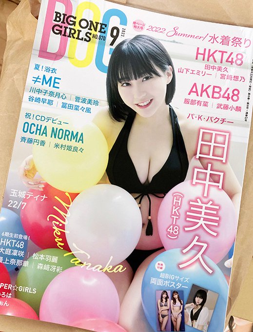 宮﨑 想乃@sono_m_1030 -- 7/29発売お久しぶりのBOGさん🦋♡か〜わいい衣装でした🎀おたのしみに! twitter.com/bigonegirls/st… pic.twitter.com/klHnwSyZQJ BIG ONE GIRLS編集部 BOG最新号、完成しました。表紙・巻頭グラビアは、HKT48 田中美久ちゃん✨夏らしく、水着で表紙を飾っていただきました👙⛱『BIG ONE GIRLS 9月号』は7月29日発売です😉#HKT48#田中美久 pic.twitter.com/i0EgituegN