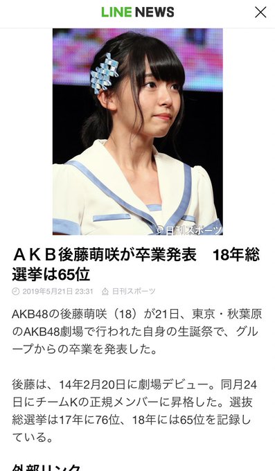 萌咲の卒業がLINEニュースになってたから