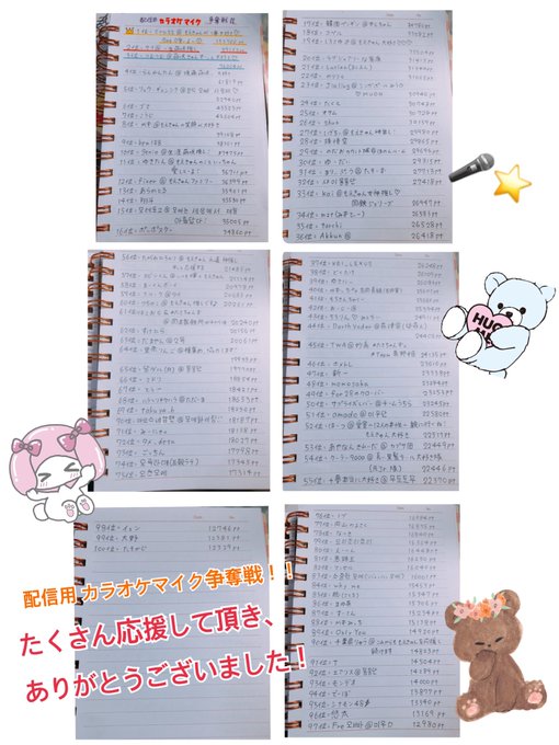 2つの100位以内にランクインされた皆さんの、お名前を書かせて頂きました!