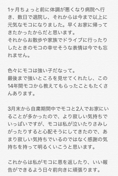 14年間、感謝の気持ちでいっぱいです。幸せでした。