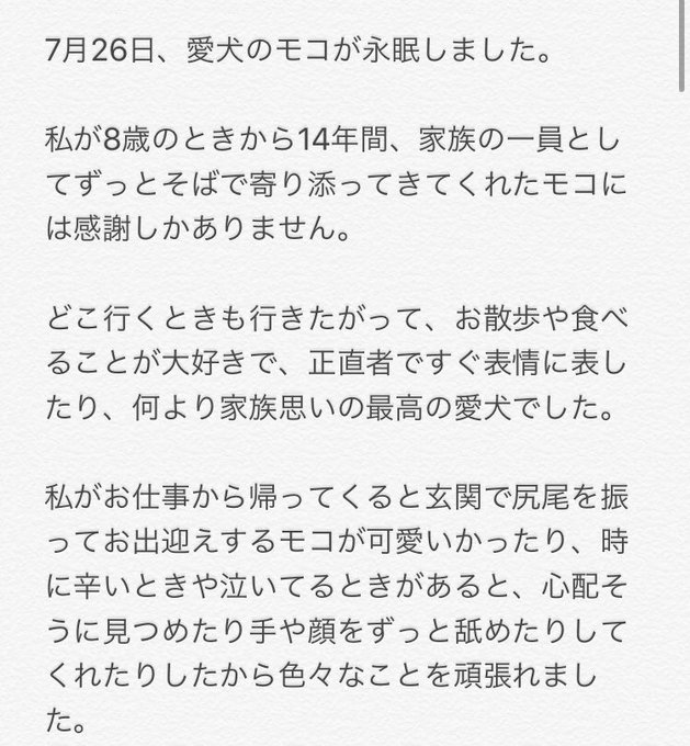 7月26日、愛犬のモコが永眠しました。