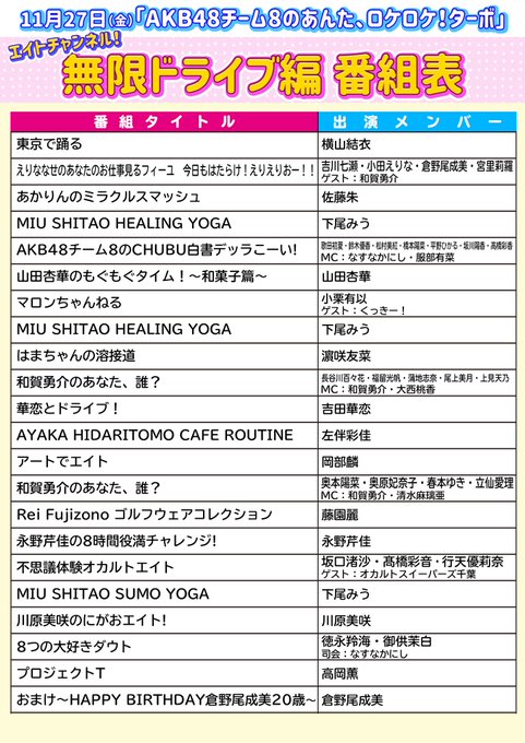 「AKB48チーム8のあんた、ロケロケ!ターボ エイトチャンネル!無限ドライブ編」