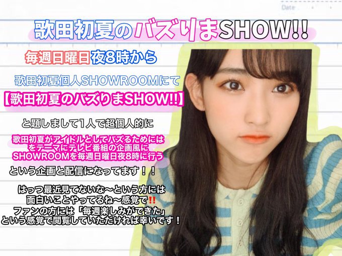 8/22 20時から「歌田初夏のバズりまSHOW!」をshowroomにて配信します!☺️
