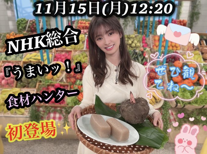 本日11/15(月)、このあと12:20から放送のNHK総合『うまいッ!』に #武藤十夢 が #食材ハンター として初登場😆👏❣