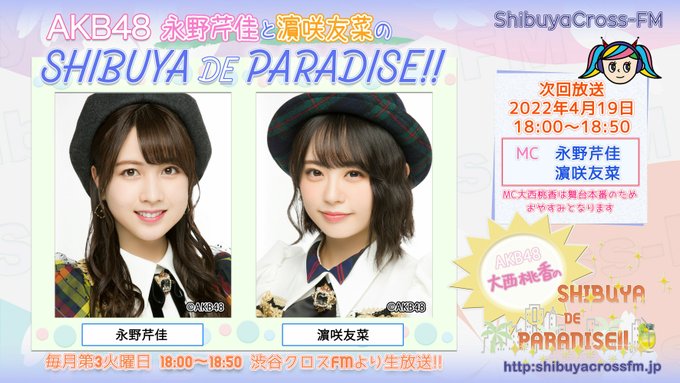 本日4/19(火)18:00からの、AKB48チーム8 #大西桃香 の冠番組、渋谷クロスFM「AKB48 大西桃香のSHIBUYA DE PARADISE‼」は生放送でお届け😊🌸