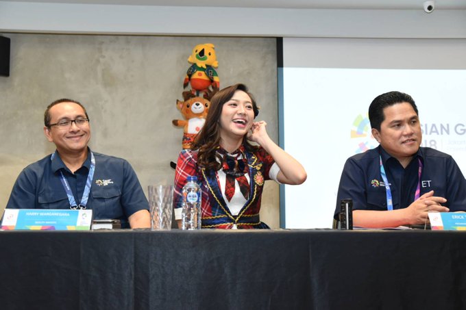 JKT48 menghadiri Press Conference Asian Games 2018 di fX Sudirman sore tadi sebagai tanda siap untuk mendukung kelancaran dan kesuksesan acara. Turut hadir Ketua Panitia Pelaksana Asian Games 2018 Erick Thohir sebagai pembicara. #JKT48xAsianGamespic.twitter.com/L9Vs1Yqi5y
