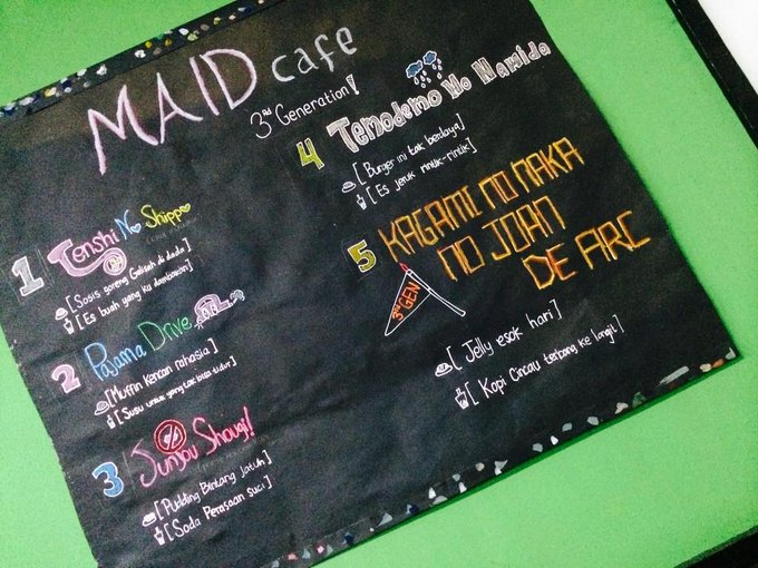 lihat ini! menu di #Maidcaf3 tadi~ bagus gaaaa?>_< maaf ya kalo agak berantakan 😣😣 pic.twitter.com/9hrAySO6aF