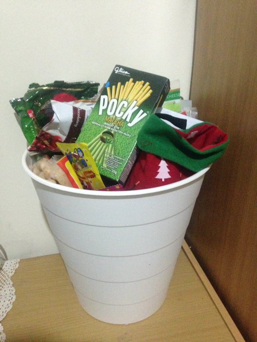 Mana pas lagi bungkus, doubletape (yggabybawa) abis. Jadi finishingnya pake karet rambut :( Berasa bungkus warteg, kasian Wawa :( twitter.com/bebyjkt48/stat…