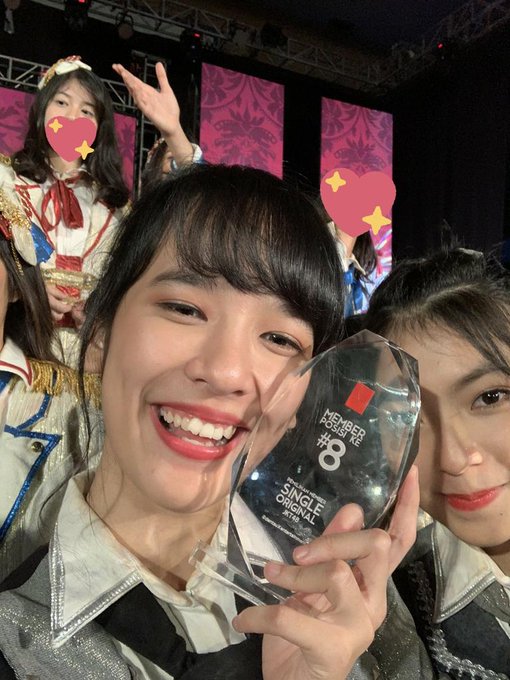 Tahun ke-8 di JKT48 dapat posisi 8. Terima kasih atas konsistensi dukungan yang diberikan buatku. Semoga bahagia sama hasilnya ya.