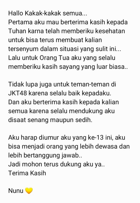 Cindy Nugroho@C_NunuJKT48 -- #NunuCoba pake baju bayi😛 pic.twitter.com/aNRJScBkB7 Aurel Mayori@A_YoriJKT48 -- @C_NunuJKT48 bayi cosplay jadi bayi :) Cindy Nugroho@C_NunuJKT48 -- @A_YoriJKT48 Sebut saja Bayi Tua...