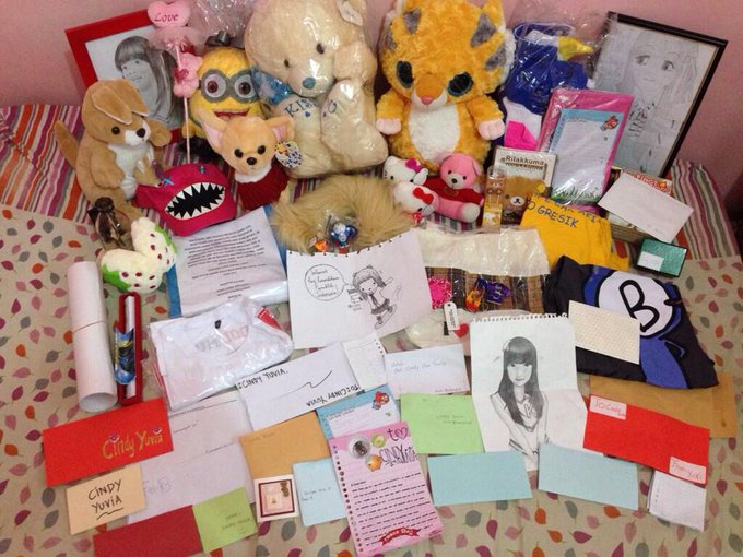 Cindy Yuvia@Cindvia_JKT48 -- Thanks untuk ini semuaaaa, seneng banget >.< makasih yaaa~ pic.twitter.com/xOgCxQWnww