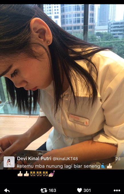 Mbak Nunung lebih hitszzz dari pada aja!! Banyakan love mbak Nunung😓😓tp pas diliat mirip bgt gils HAHHA @kinalJKT48 pic.twitter.com/EKZSHnE8ZY