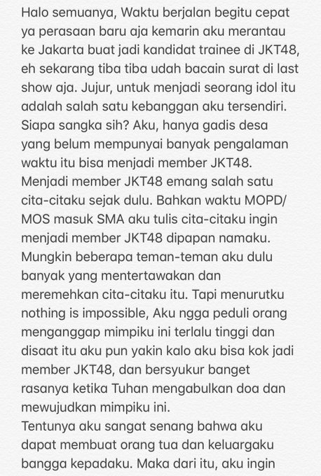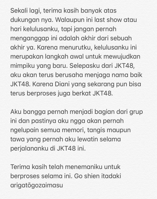JKT48@officialJKT48 Pertunjukan hari ini pun merupakan pertunjukan kelulusan 7 lulusan khusus JKT48 yakni @G_BrielleJKT48 @A_AfiqahJKT48 @Julie_JKT48 @Diani_JKT48 #FajarTerakhirJKT48TeamJ pic.twitter.com/n0xb3FobF2