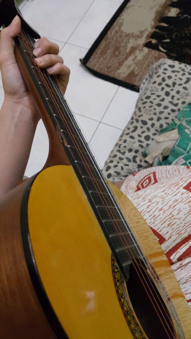Susah nya itu pindah kunci nya yah.. abis itu jari nya suka keselimpet gitu hahahah😂 jadi marcel yg atur jari2nya, aku tinggal nge jreng😈
