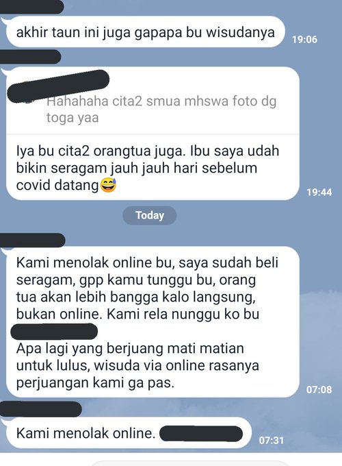 aku sih bagaimana baiknya aja, untuk saat ini daripada wisuda lebih ingin tetap sehat dan terhindar dari resiko2 lah. Kalo sampe kenapa2 kitanya, emang bakal bisa wisuda? 👀