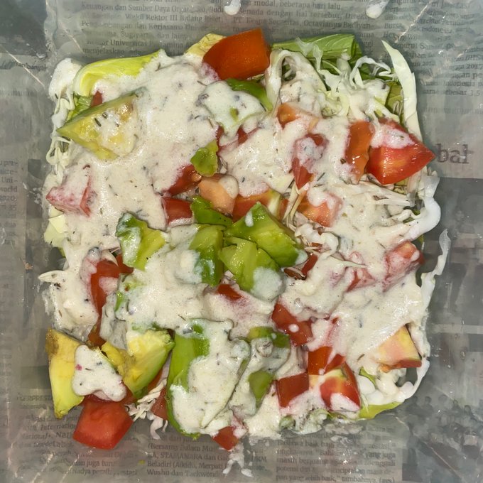 aku makan salad trus dresing ny bikin sendiri 🤤