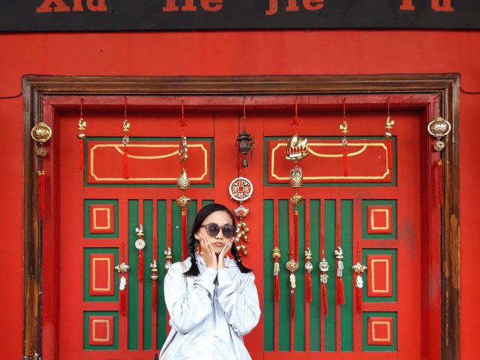 Udah kaya Mei-mei belum?? Rambut di kepang 2 trus pake kacamata. Apa malah kaya anak ilang aku??😖